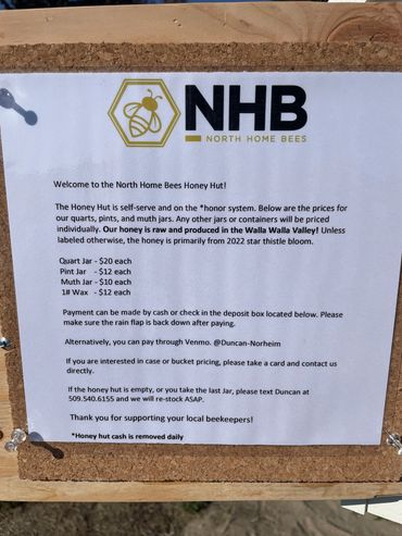 The Honey Hut is open 24/7 and always stocked with Quarts, 17.5oz, Candles & Wax